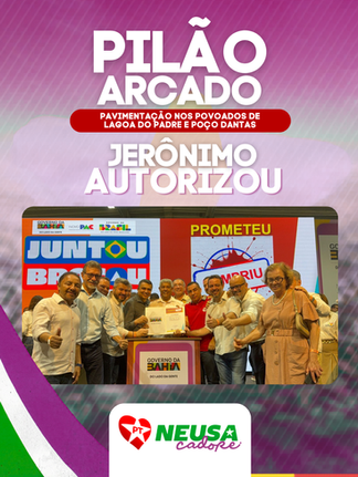 Em Pilão Arcado, o anúncio contempla a pavimentação nos povoados de Lagoa do Padre e Poço Dantas.